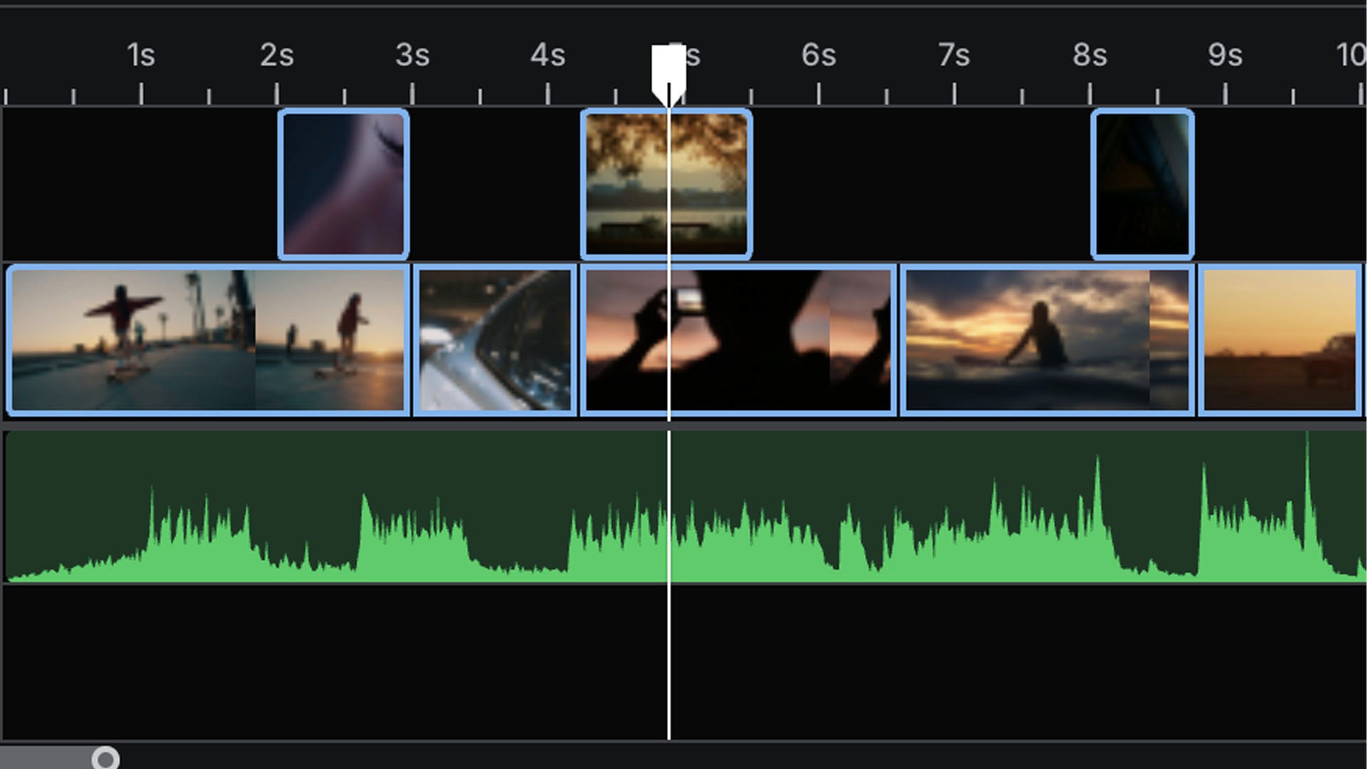 Functional and aesthetic — the timeline now displays clip thumbnails that help you navigate faster and more accurately.