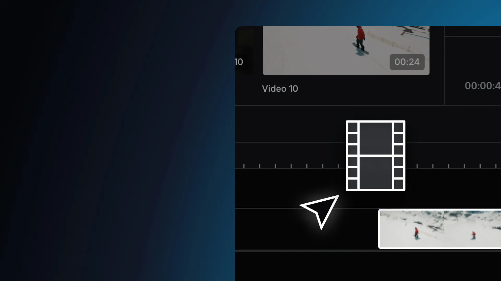 To start editing your video, drag an asset from the Media panel on the left and drop it on the timeline at the bottom.
