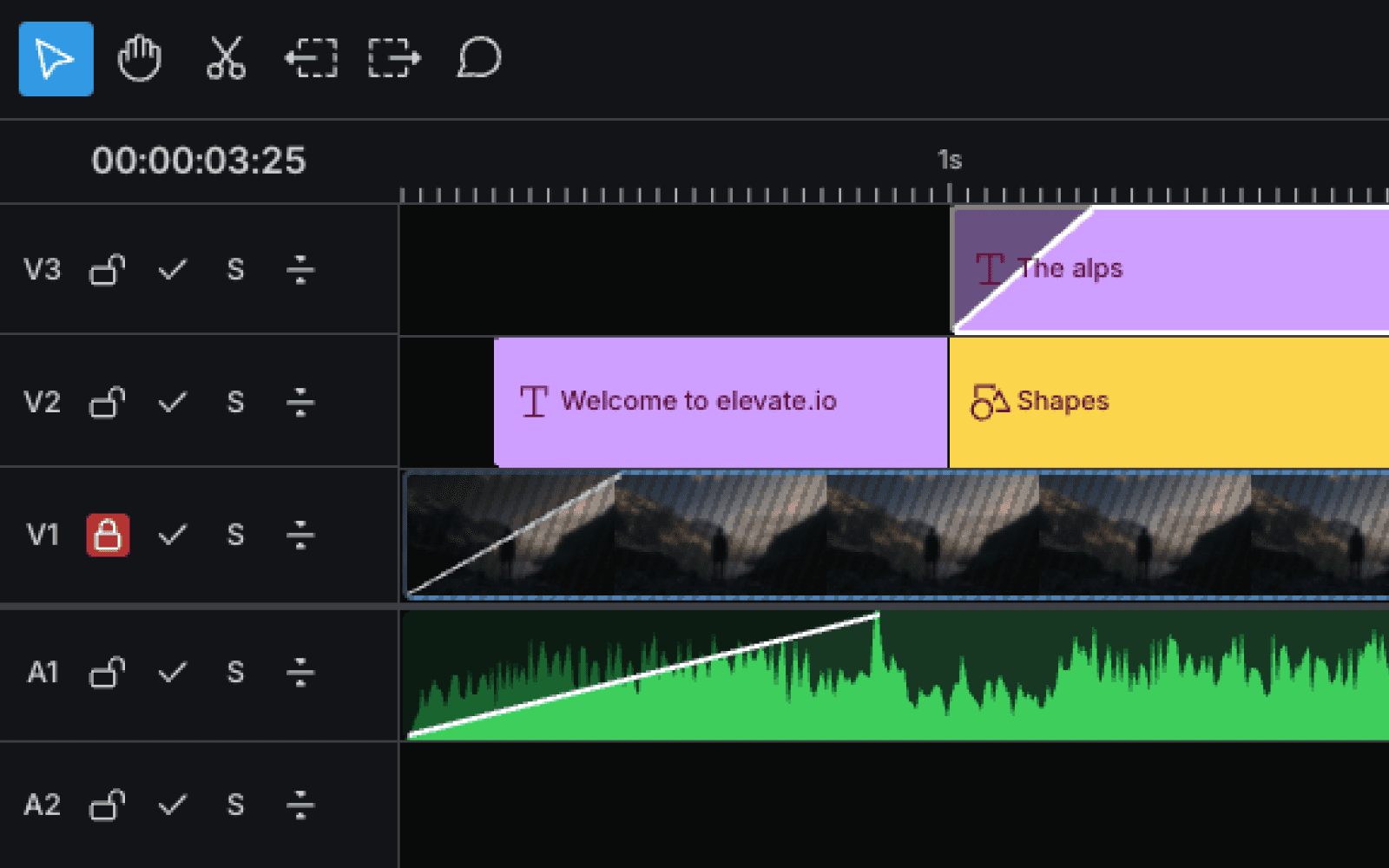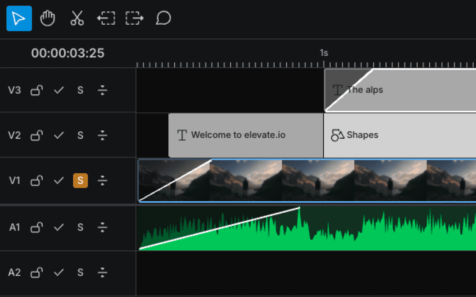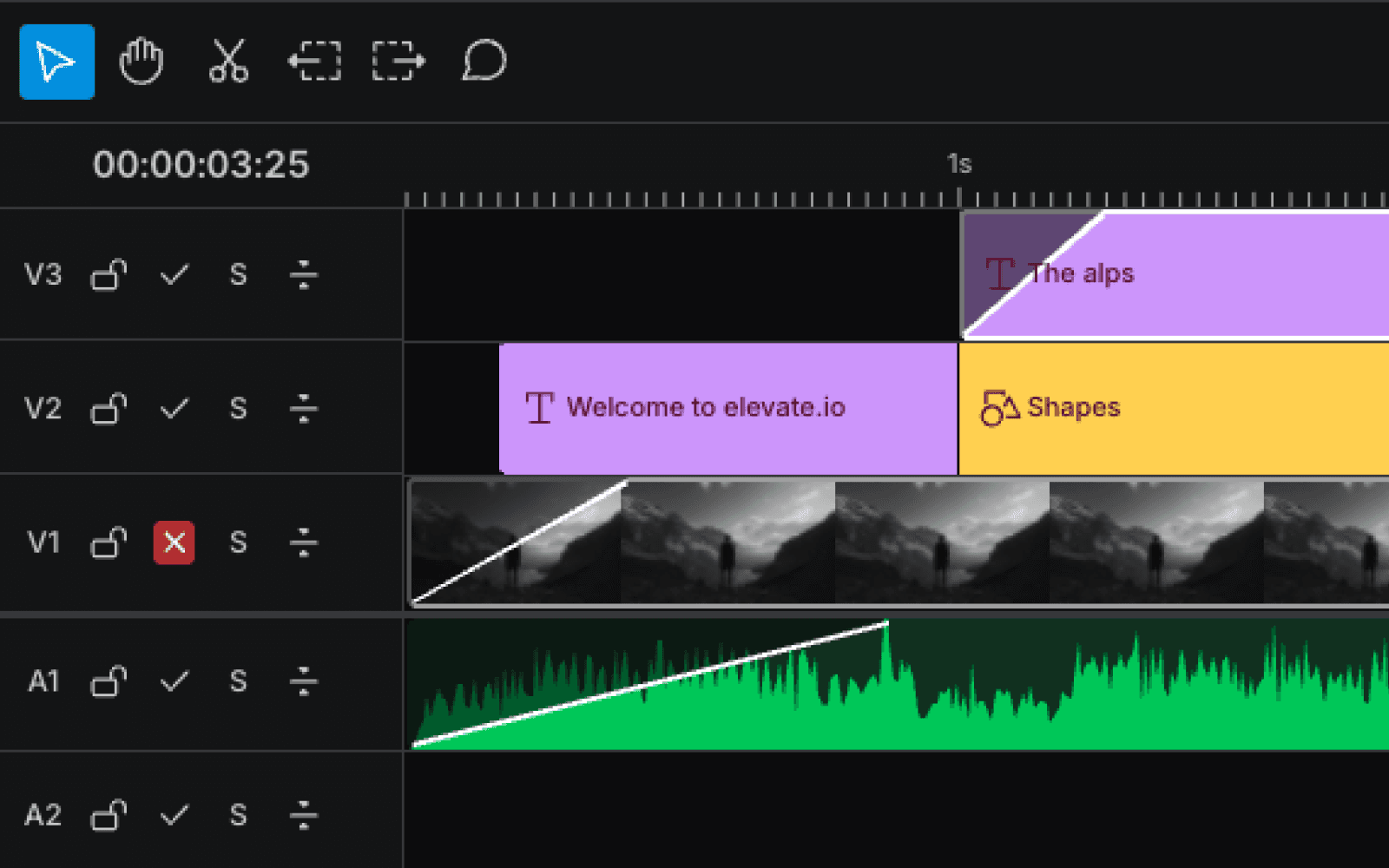 By default the elevate.io timeline starts with 4 tracks for both video and audio. You can control the quantity and behavior of timeline tracks in various ways.