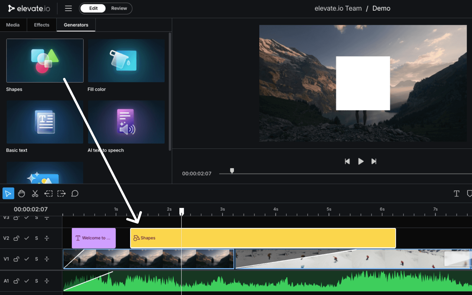 Add shape overlays like rectangles, circles, and triangles in elevate.io to enhance your video design.