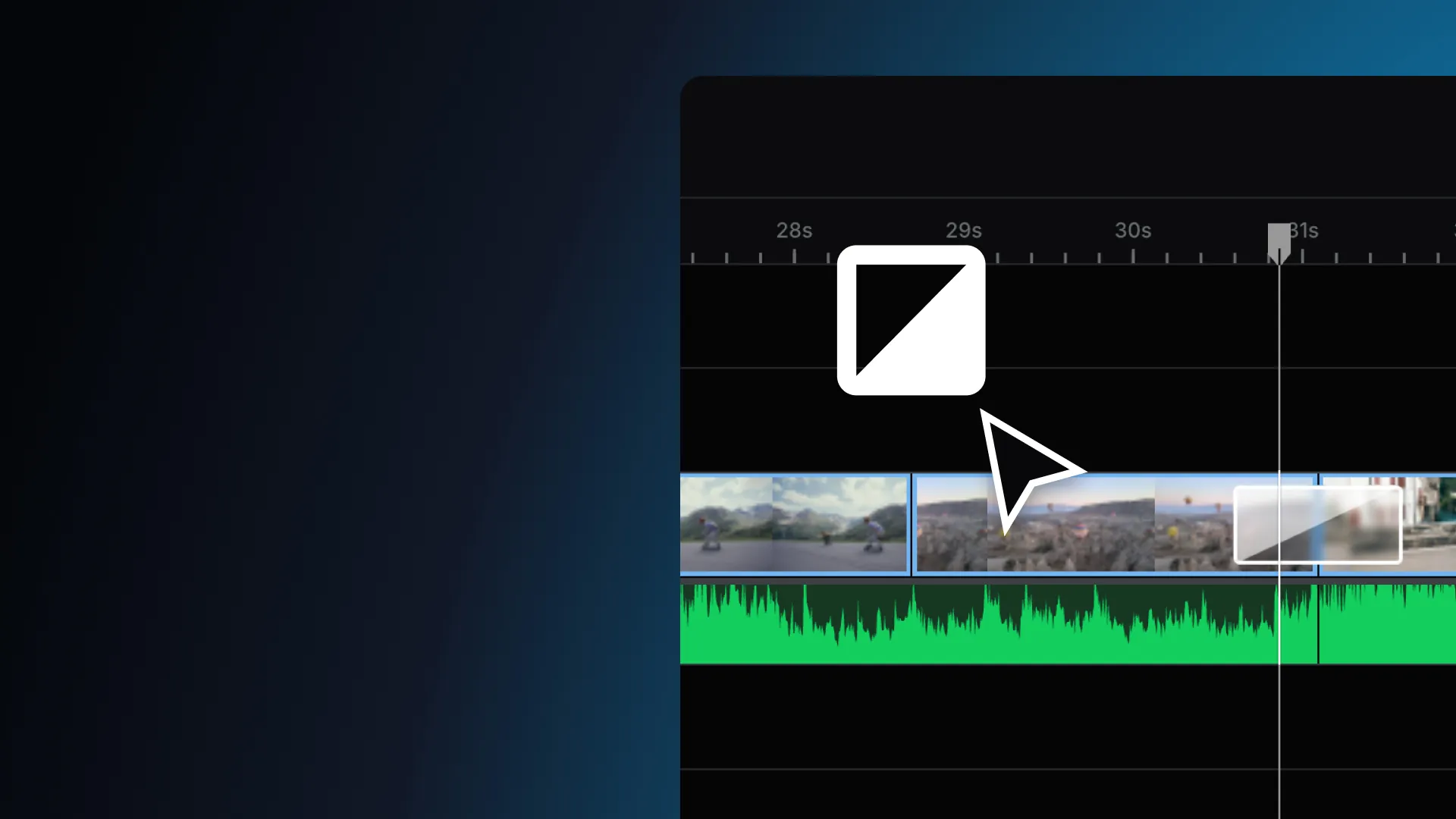 Easily create professional looking transitions between your video clips by adding fades, dissolve, or other dynamic effects in elevate.io