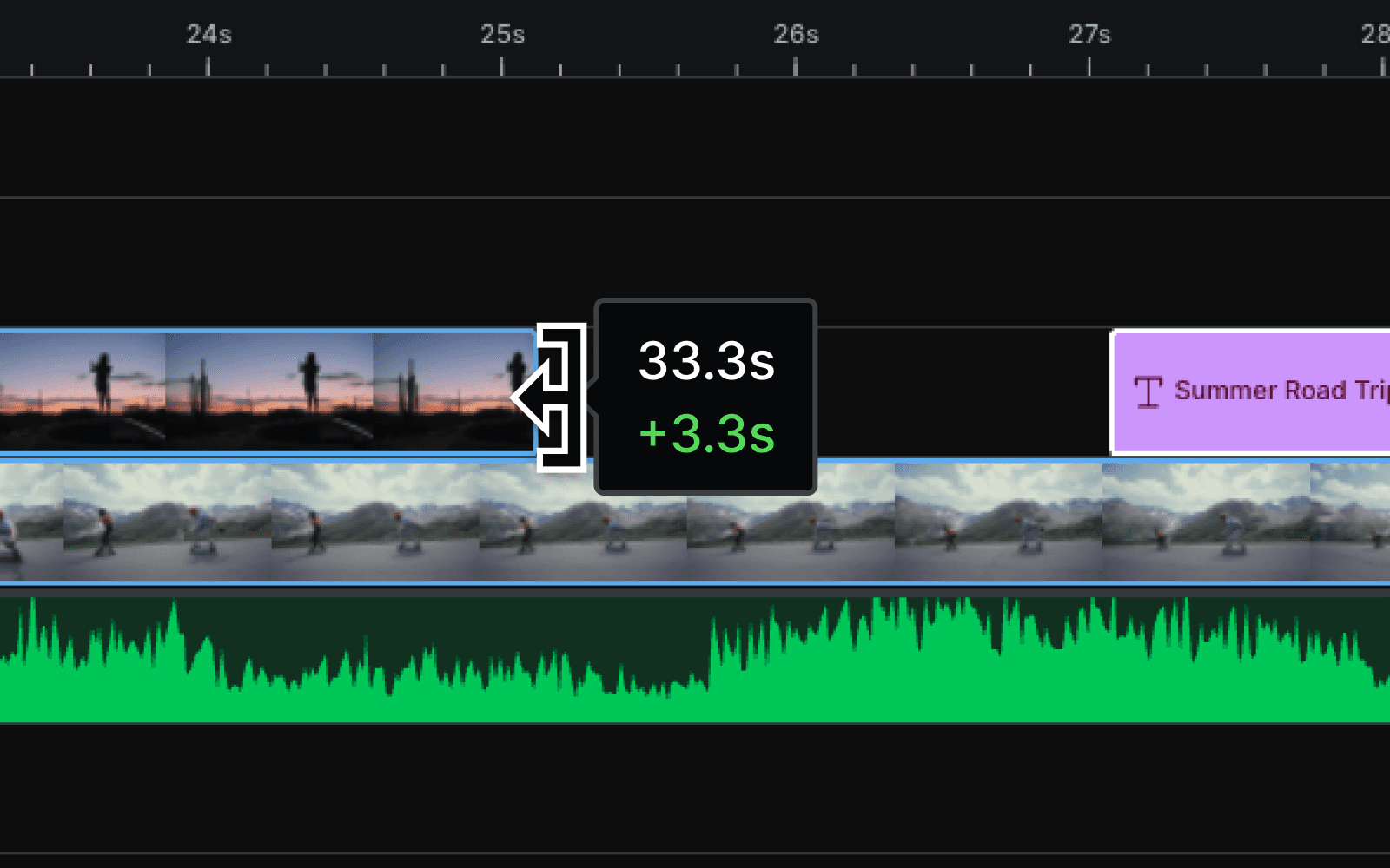 Trim by clicking and dragging the start or end of a clip inward or outward to shorten or extend it.