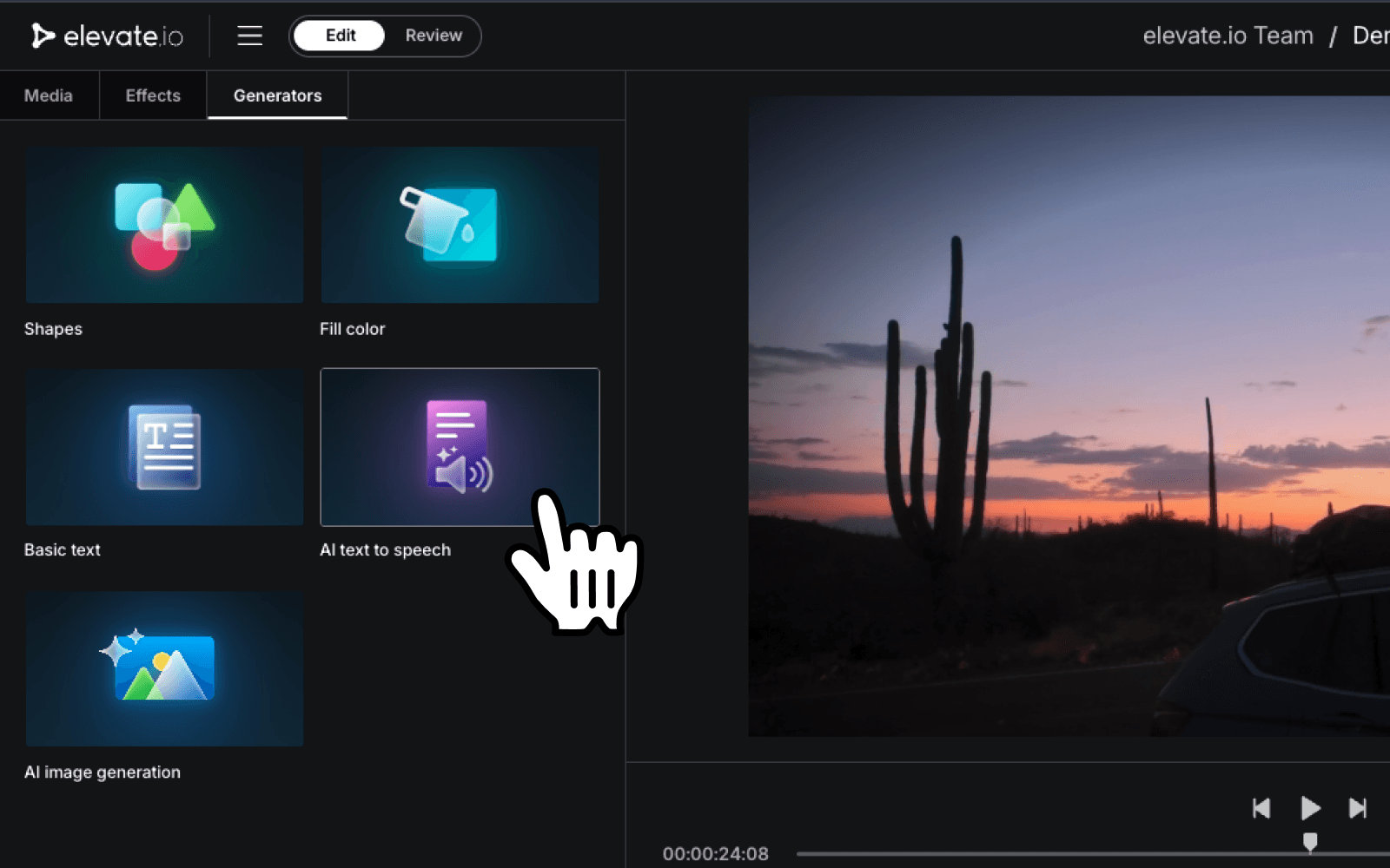 Whether you’re feeling a bit camera-shy, short on time, or just sick of re-recording the same line 12 times, elevate.io’s built-in AI voice generator makes it easy to add clean, clear voiceovers in seconds right in your browser.