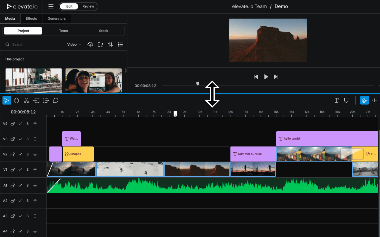 Zoom in and out of the editing timeline to get a closer look and make frame-accurate adjustments.