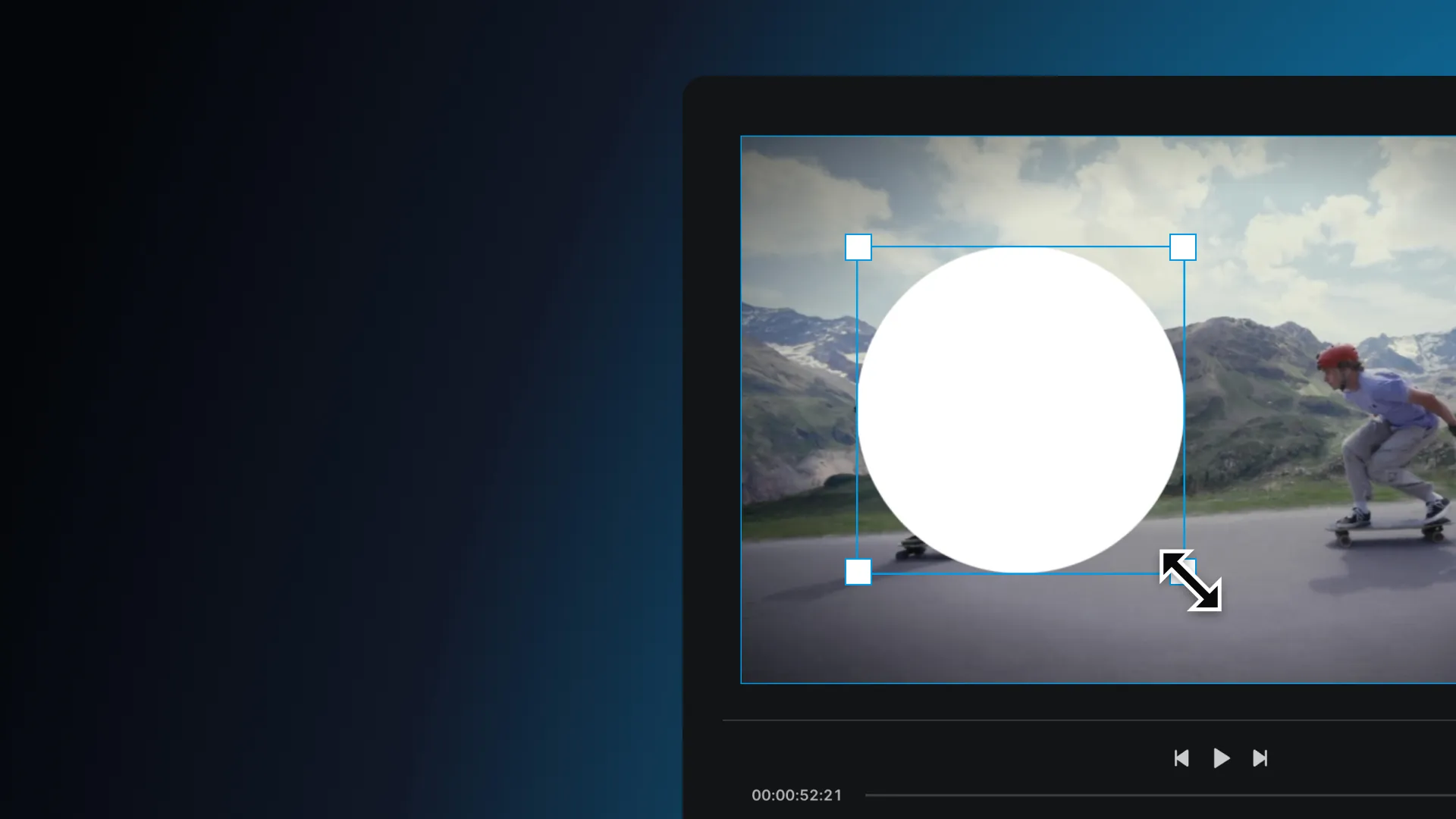 To resize, crop, or move an element, select any element in the preview window - a clip, text, or shape - and you’ll see a blue outline appear around it. This is your boundary box.