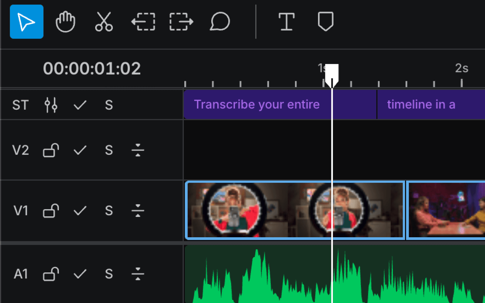 Once finished, a new subtitle track (ST) will appear at the top of your timeline.