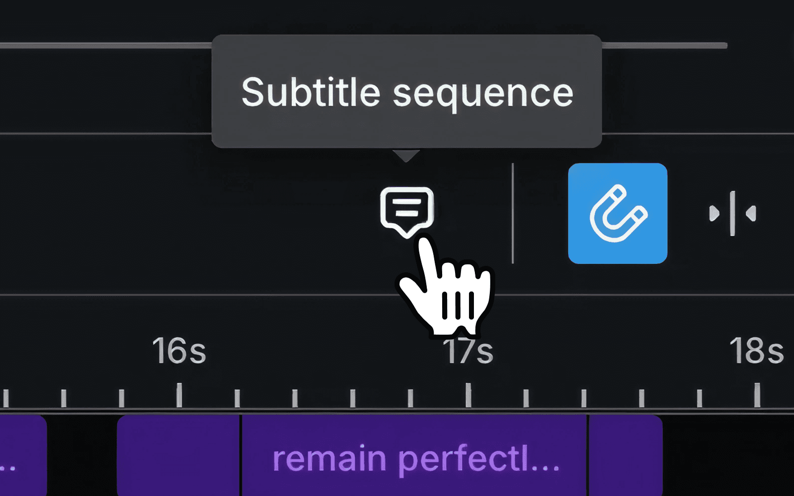 Once you have your clips on the timeline, click on the Subtitle sequence button in the toolbar, just above the timeline.