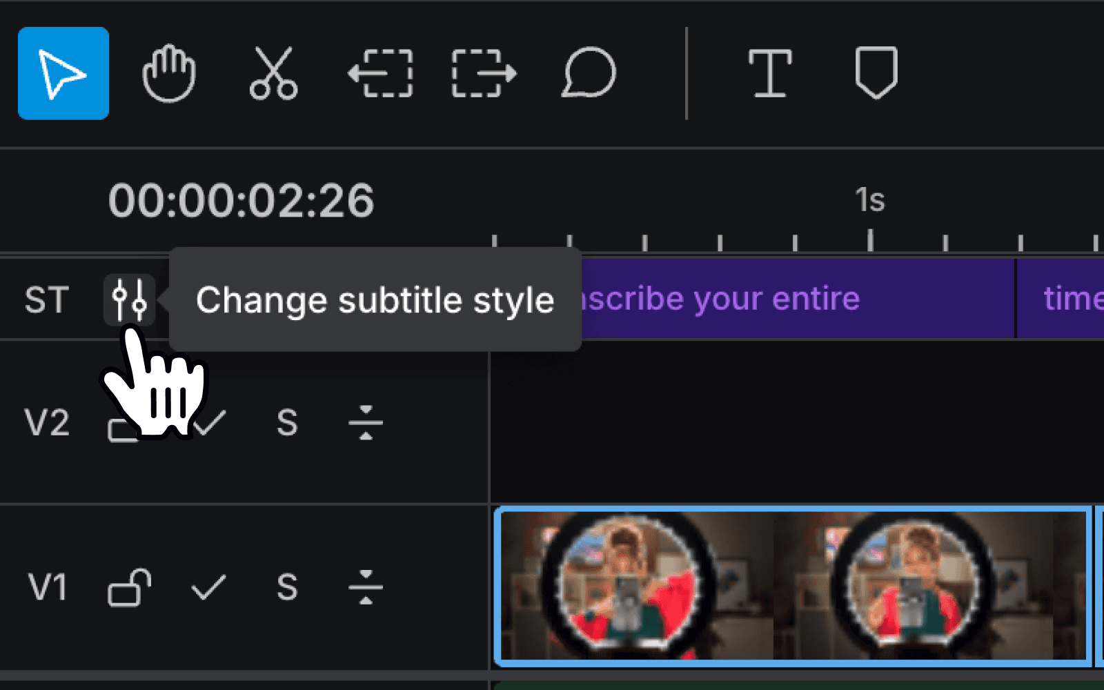 Alternatively, you can click the 'Change subtitle style' button directly on the ST track for a quick style swap.