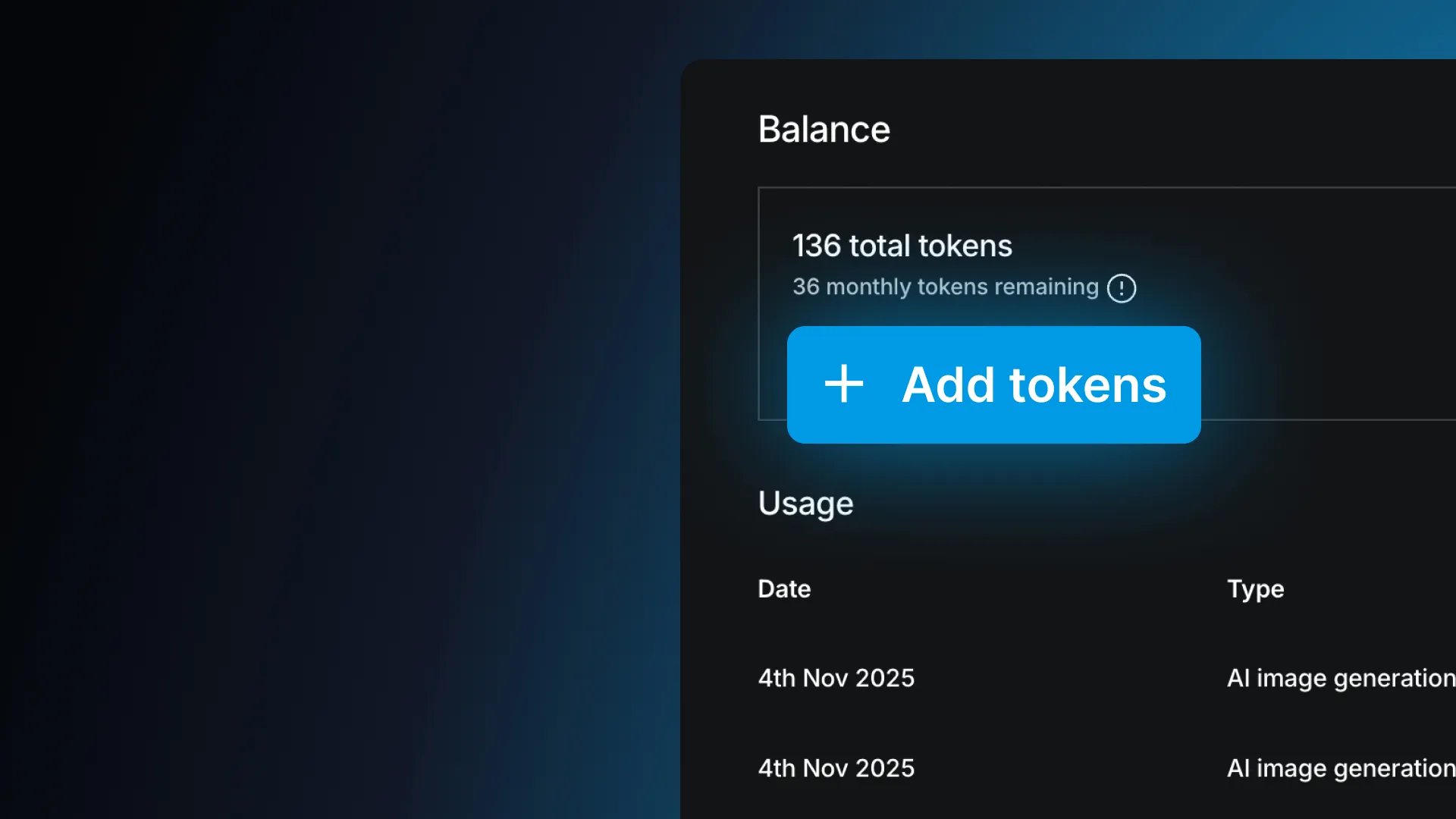 In elevate.io, tokens are what powers AI tools like AI text-to-speech and AI image generation.